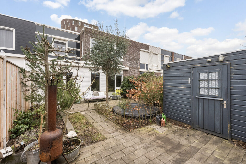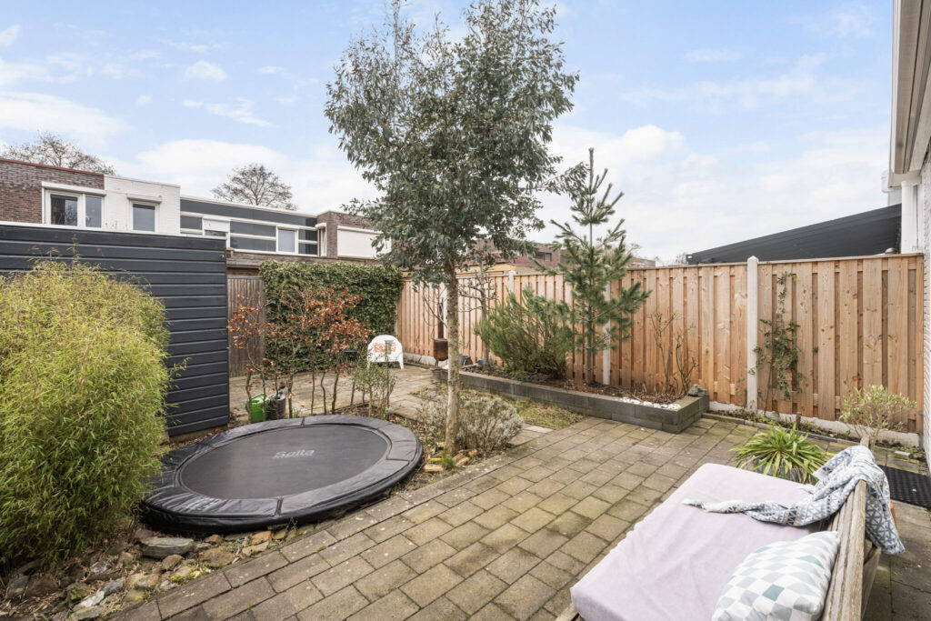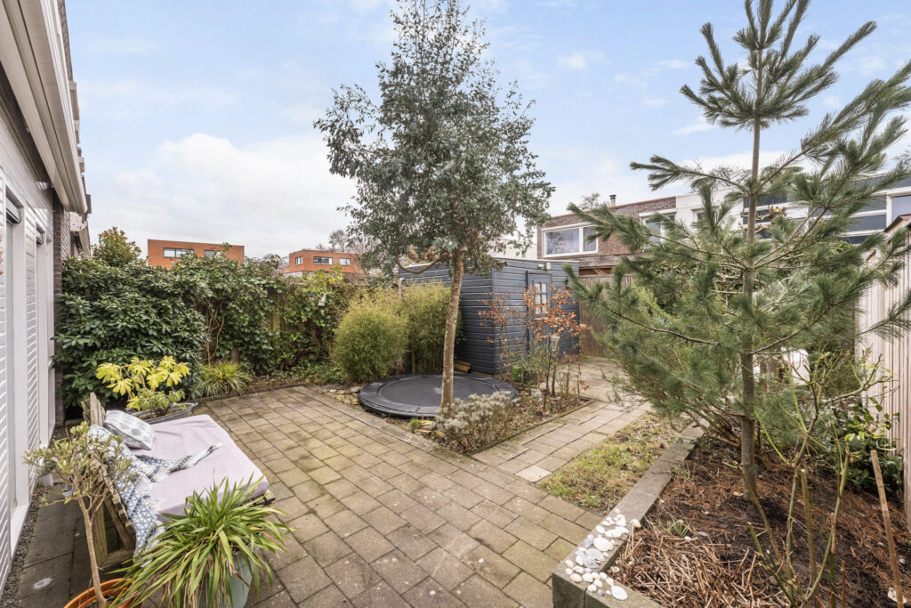 Ook buiten komt de veelzijdigheid van het huis naar voren. Zo kun je heerlijk zitten in de met zorg aangelegde groene achtertuin of genieten van de ochtendzon in de voortuin of op het dakterras. In de achtertuin komt de zon in de loop van de ochtend achterin de tuin en in de avond schuift dit op naar de gevel. Zo is er altijd een plekje in de zon of schaduw.  Verder is er een achterom en een houten berging is ideaal voor de fietsen en tuinspullen.