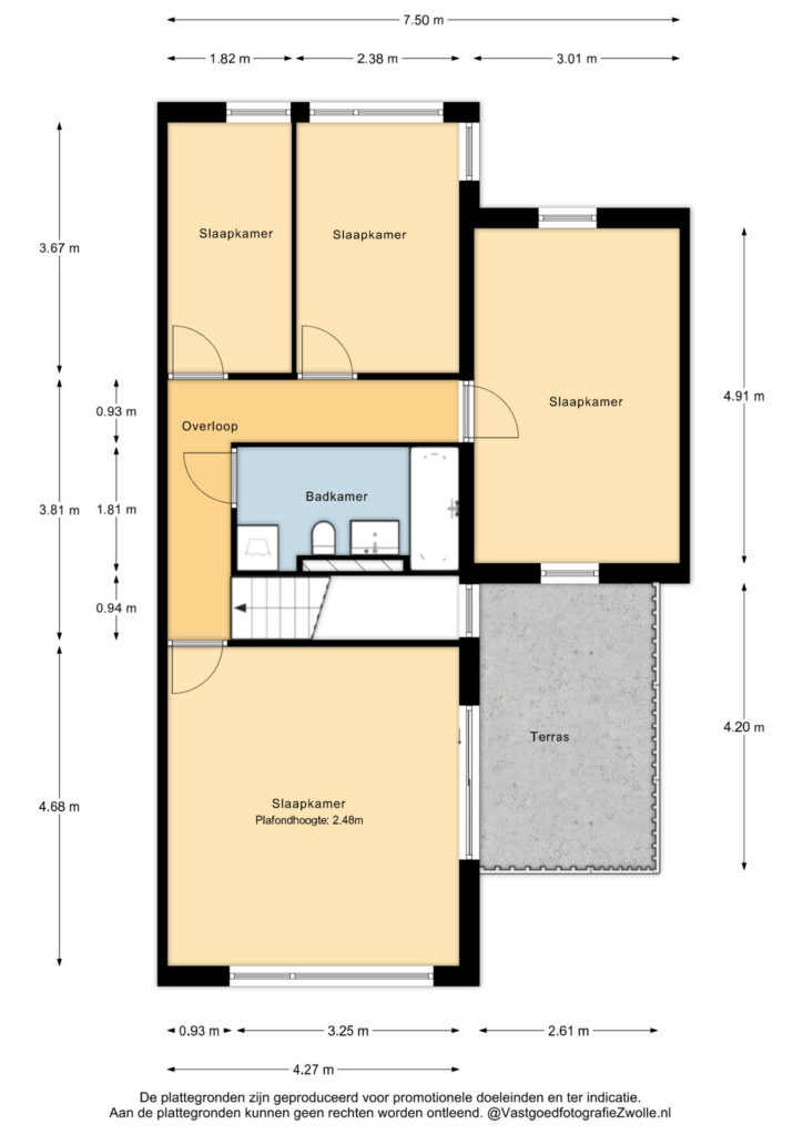 Op de eerste verdieping zijn nog eens vier slaapkamers aanwezig. De grote slaapkamer aan de voorzijde heeft ramen aan twee zijden en toegang tot het dakterras. Een fijne plek om de dag rustig te beginnen. Ook de andere kamers zijn goed bemeten en praktisch in te delen.