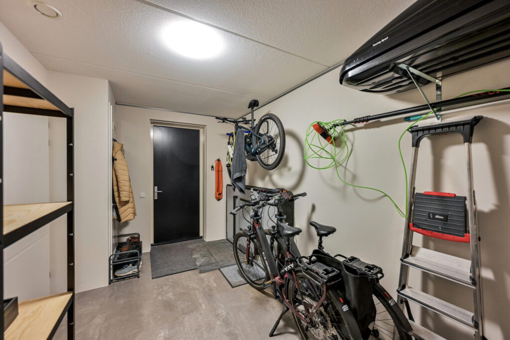 Vanuit de hal bereik je ook de inpandige, geïsoleerde berging. Hier bevinden zich de meterkast en een waterontharder.