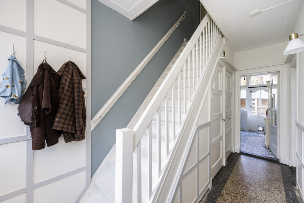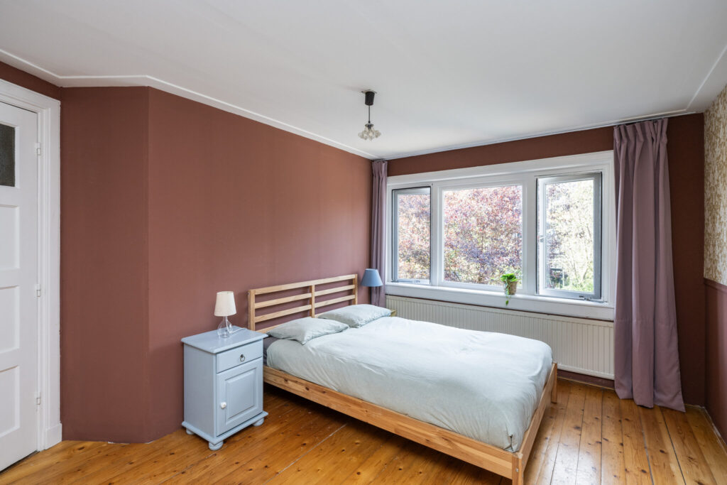 De woning ademt sfeer en karakter. Originele details, zoals de erker met glas-in-loodramen, de granitovloer in de hal en de paneeldeuren, geven de woning die kenmerkende jaren ’30-uitstraling. Binnen vind je een ruime woonkamer met erker en openslaande tuindeuren naar de tuin, een dichte keuken, drie slaapkamers en een royale badkamer op de verdieping. De tweede verdieping is een open zolderruimte, al voorzien van een dakkapel en isolatie, en biedt volop mogelijkheden voor extra kamers, een werkruimte of hobbyplek.
