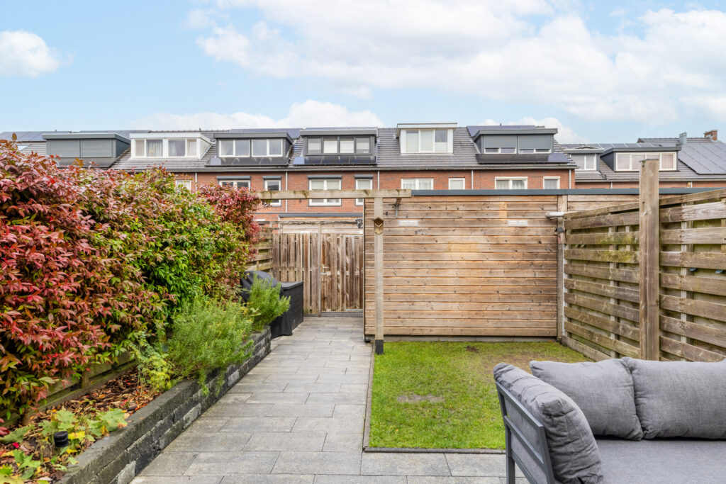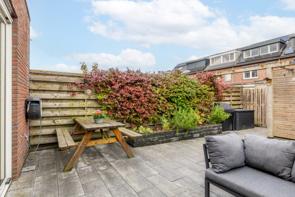 De achtertuin ligt op het noordwesten, waardoor je hier heerlijk kunt genieten van de middag- en avondzon. De tuin is onderhoudsvriendelijk aangelegd en biedt meerdere zitplekken om te ontspannen of gezellig te eten buiten.