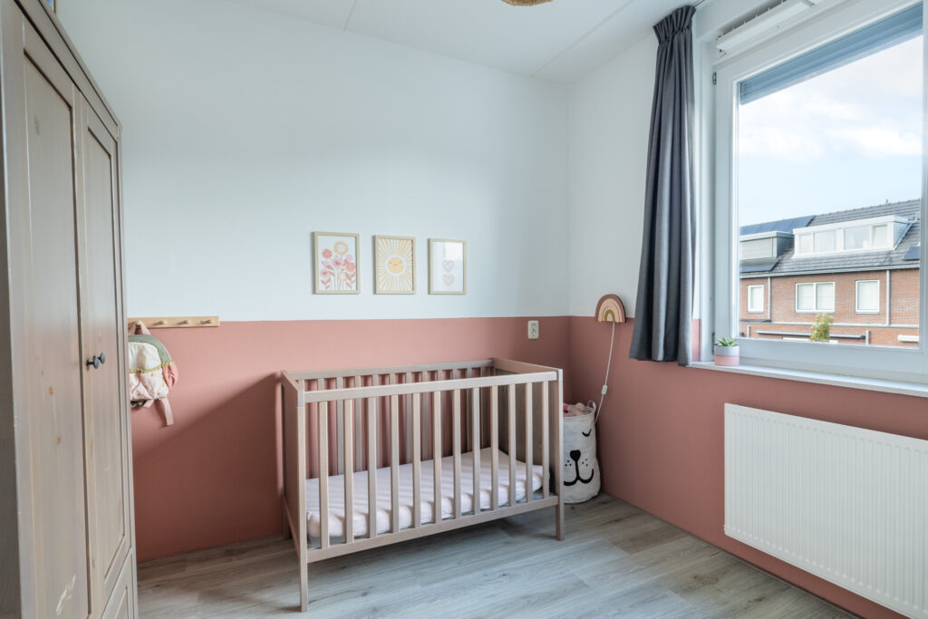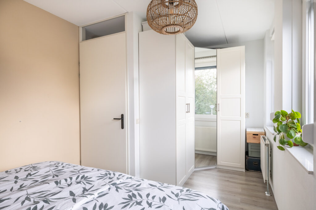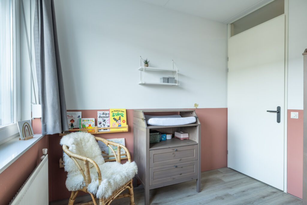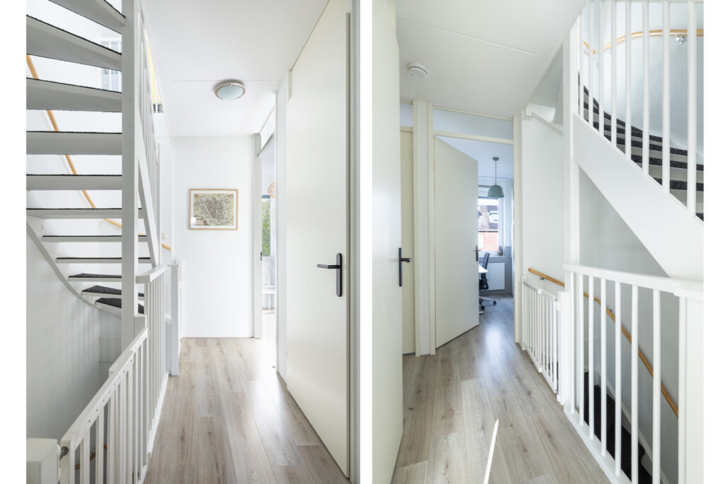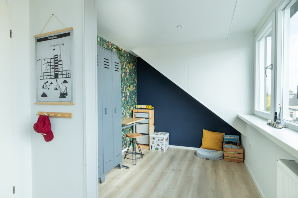De vaste trap brengt je naar een royale tweede verdieping met een voorzolder, Velux dakraam en aansluiting voor de wasmachine. De brede dakkapel met rolluiken zorgt voor extra ruimte en licht, waardoor hier nog twee volwaardige kamers zijn ontstaan.