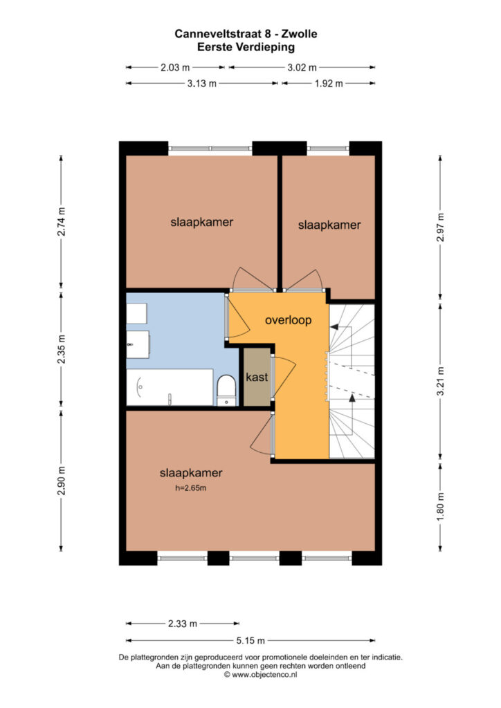 Eerste verdieping – drie slaapkamers en complete badkamer
