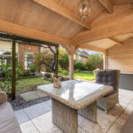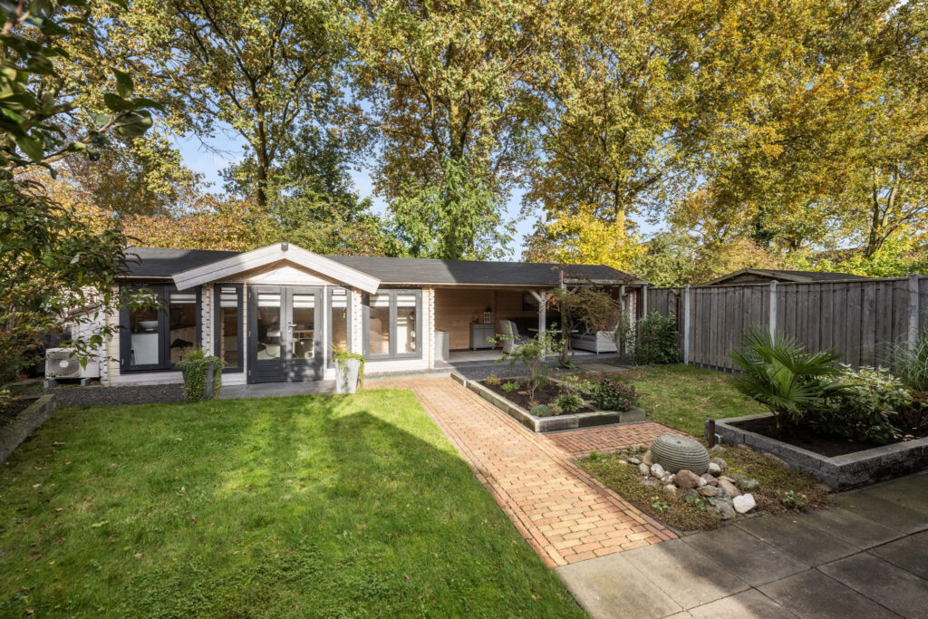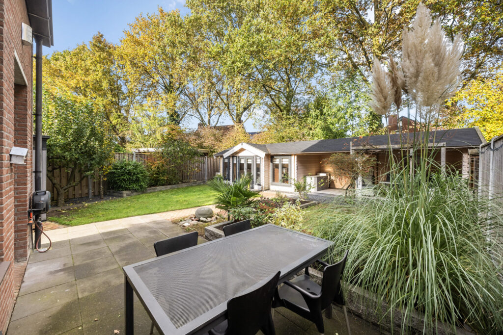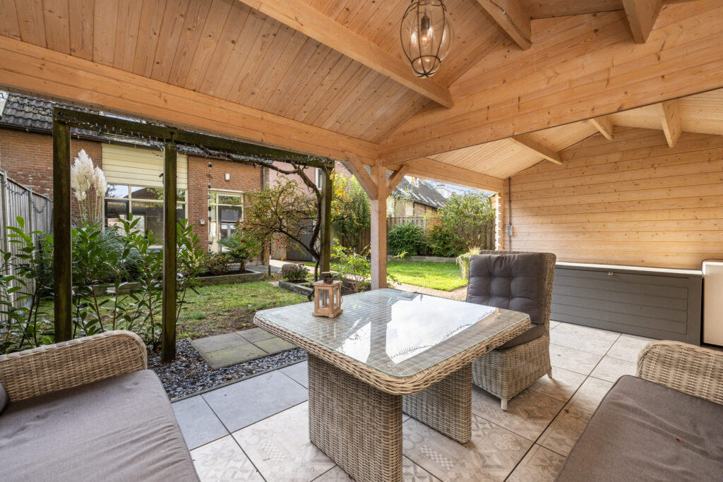 Achterin de tuin staat een geรฏsoleerde praktijk-/werkruimte, voorzien van water, elektra, dubbel HR-glas en airconditioning (koelen รฉn verwarmen). Ideaal voor een kantoor, salon of atelier aan huis. Aansluitend vind je een overkapping, perfect voor een loungeset of eettafel.