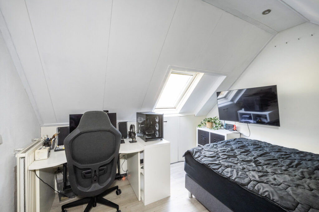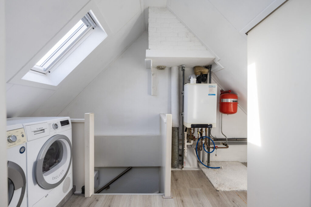 De tweede verdieping biedt een voorzolder met wasruimte en een vierde slaapkamer met dakraam. In 2022 is hier een airco geplaatst.