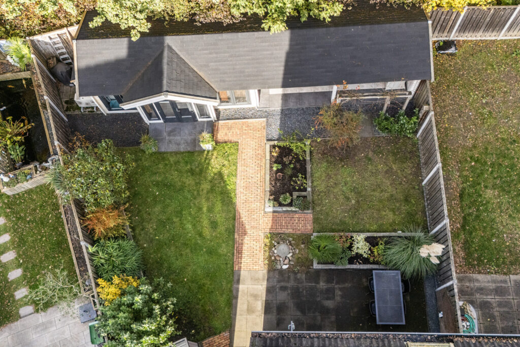 De woning ligt op een kavel van 262 mยฒ met een brede achtertuin รฉn een royale zijtuin. De ligging zorgt voor veel buitenruimte, met op elk moment van de dag een plek in de zon of schaduw.