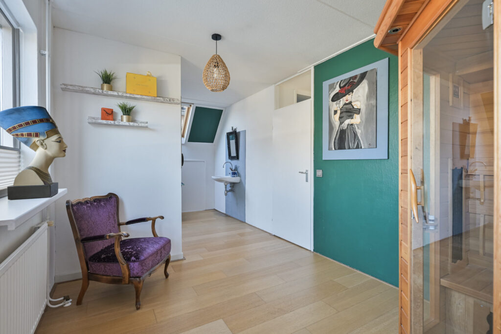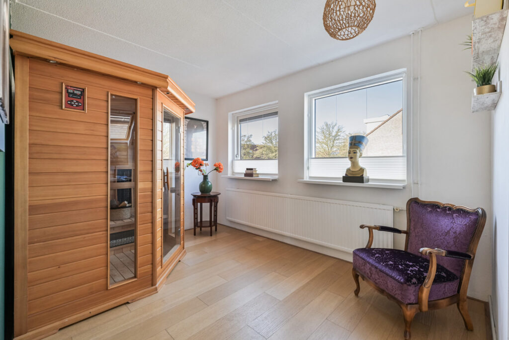 De slaapkamer aan de achterzijde beschikt over een extra ruime inloopkast. Deze kamer bestond oorspronkelijk uit twee slaapkamers, wat het mogelijk maakt om hier eenvoudig weer een extra kamer te realiseren. De slaapkamer aan de voorzijde is momenteel ingericht met een infrarood sauna, een fijne plek om thuis te ontspannen na een lange dag.