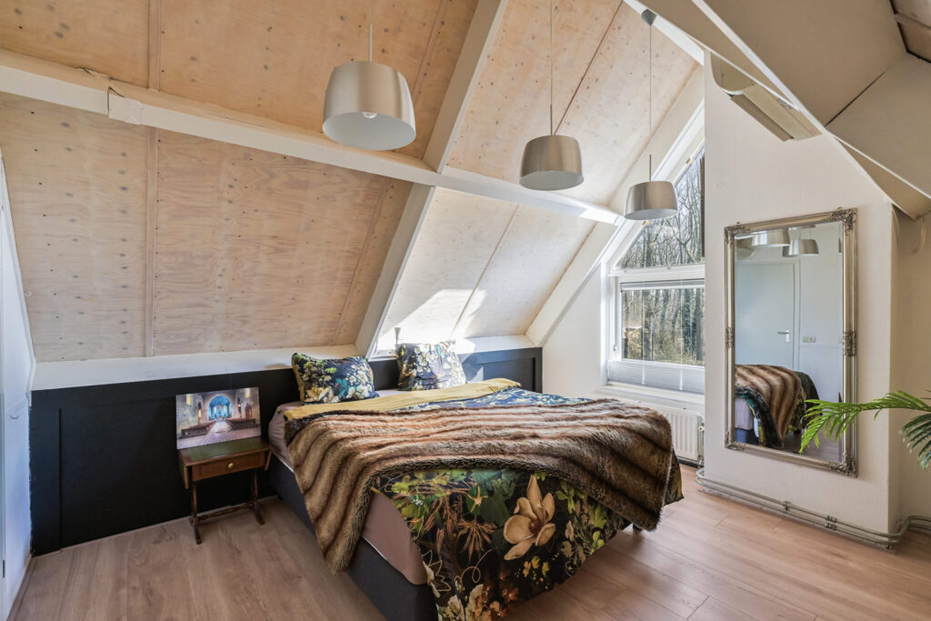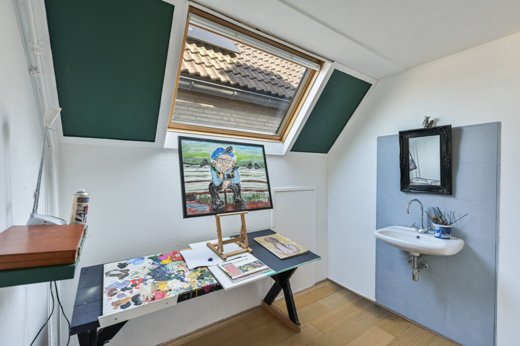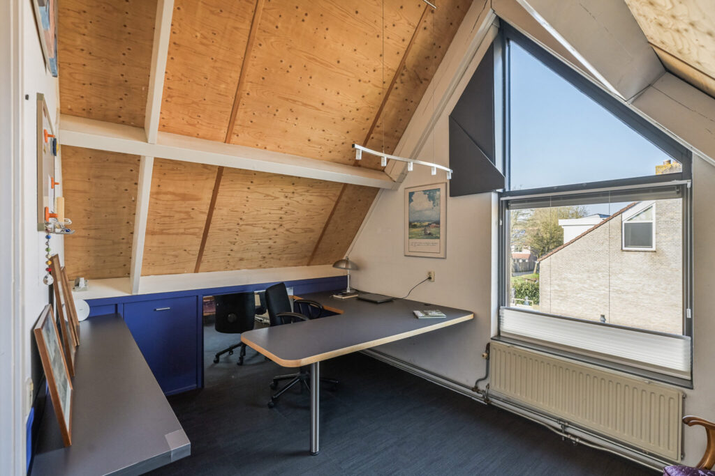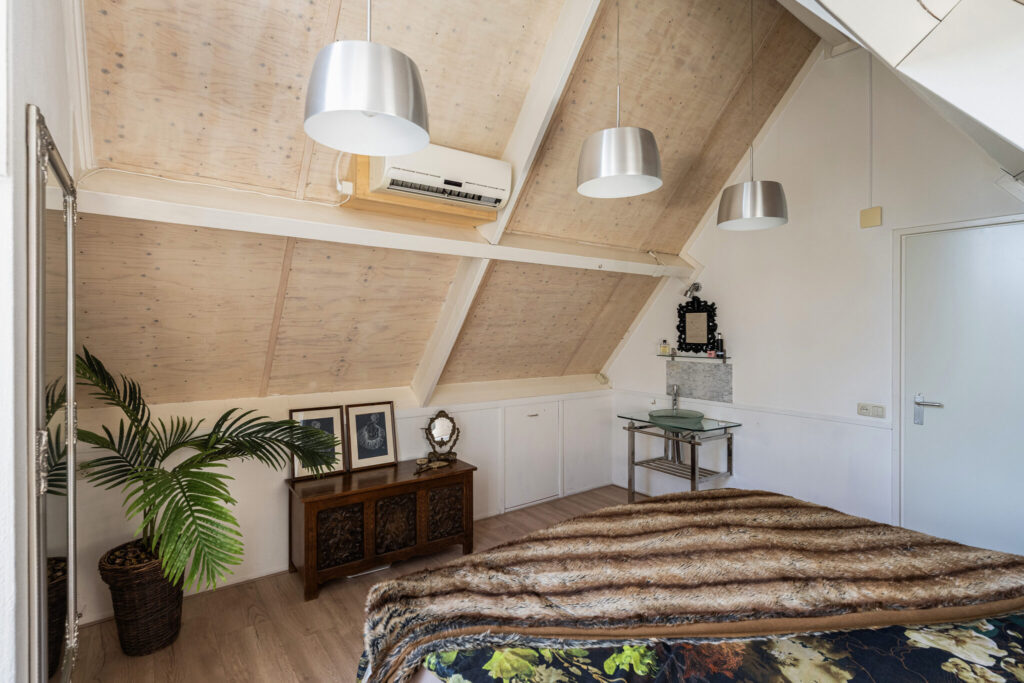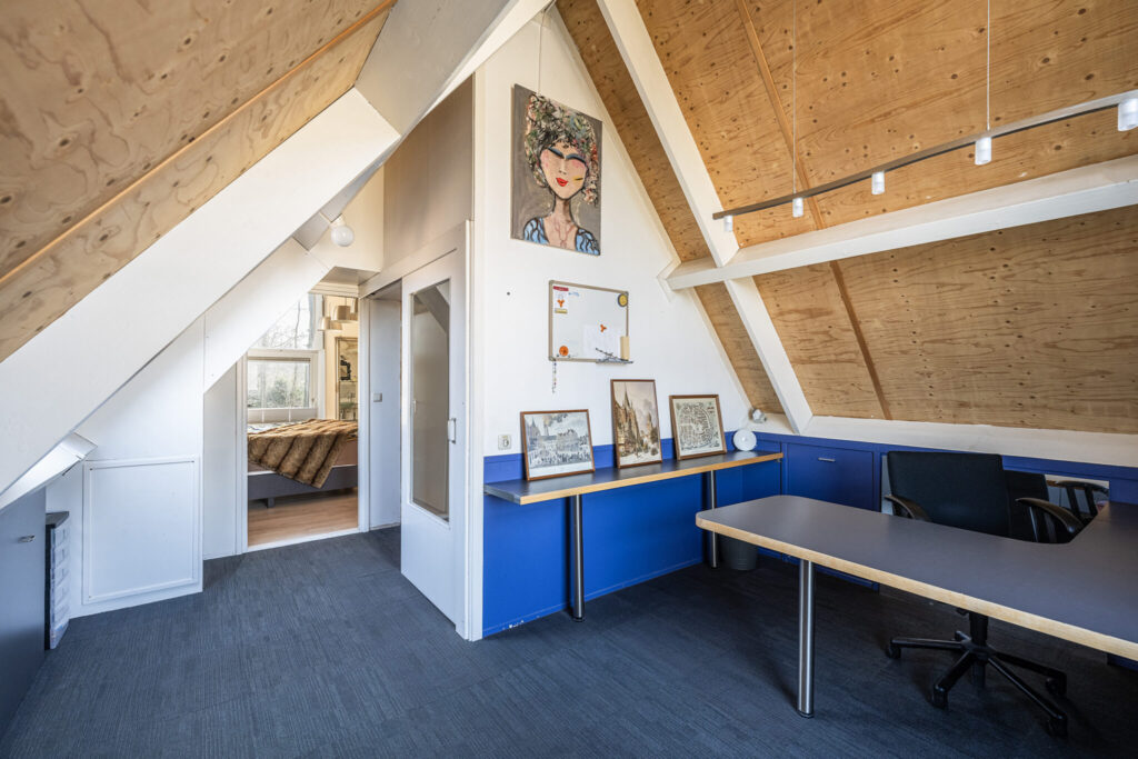 De kamer aan de voorzijde is in gebruik als werkkamer en achter de knieschotten is praktische bergruimte aanwezig. De kamer aan de achterzijde is een slaapkamer en voorzien van een split-level airco. De ramen zijn uitgevoerd in HR++ glas en de grote dakramen zorgen voor veel natuurlijk licht. Achter de knieschotten is praktische bergruimte aanwezig met ladekasten.
