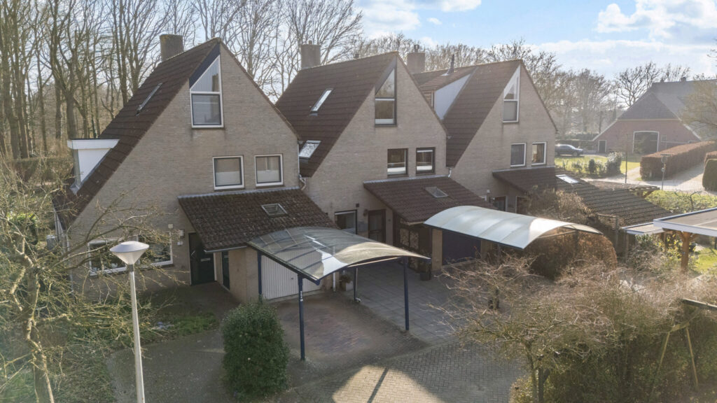Aan de voorzijde van de woning bevindt zich een carport en is er ruimte om meerdere auto’s op eigen terrein te parkeren.