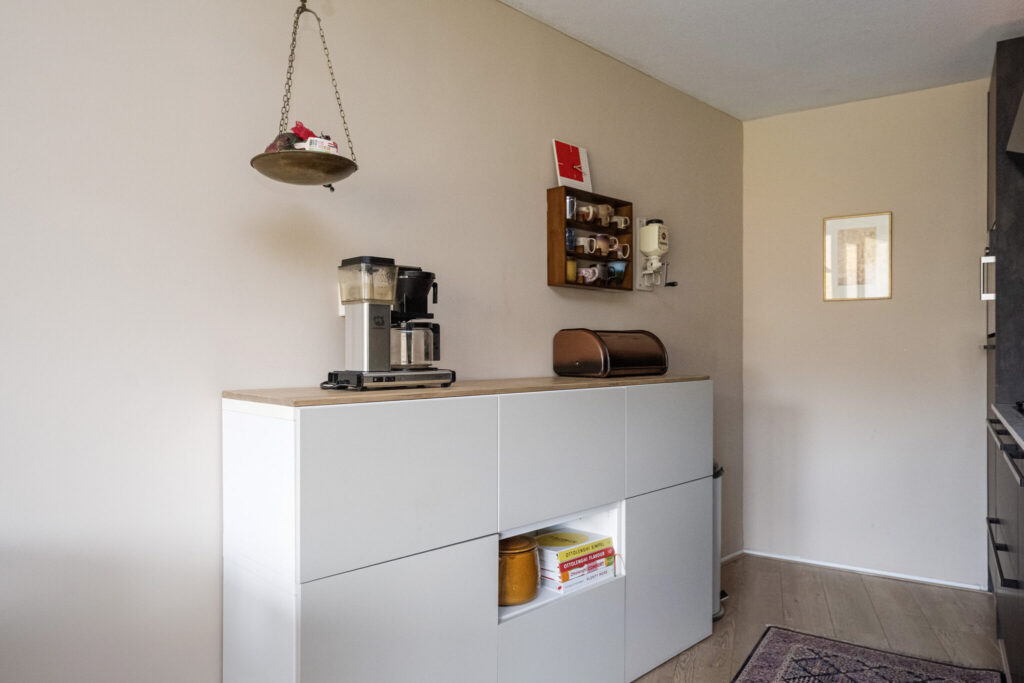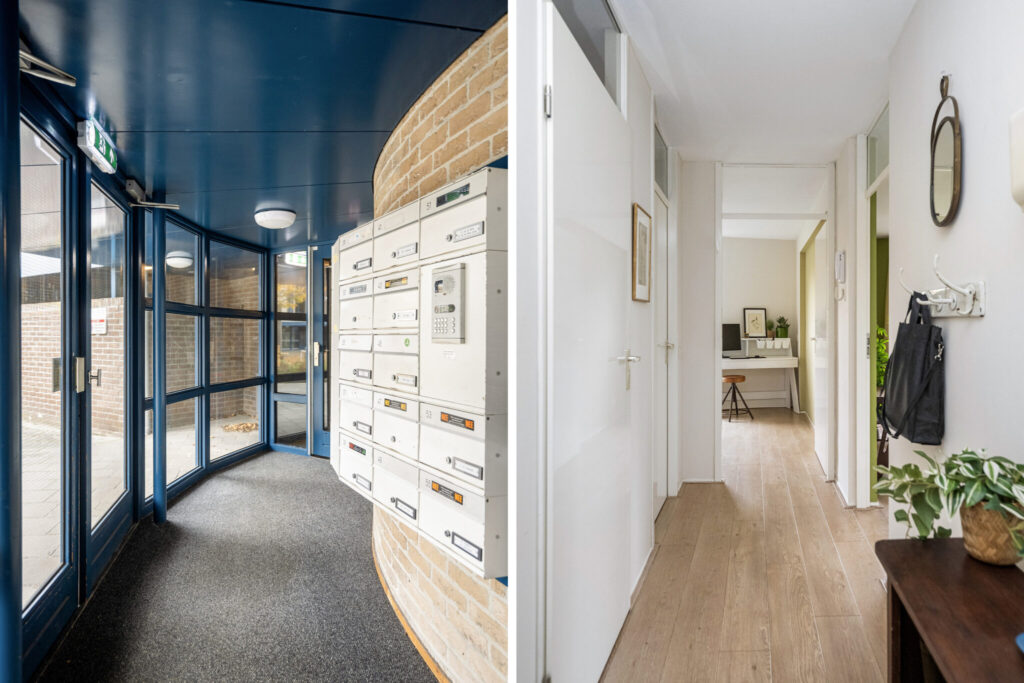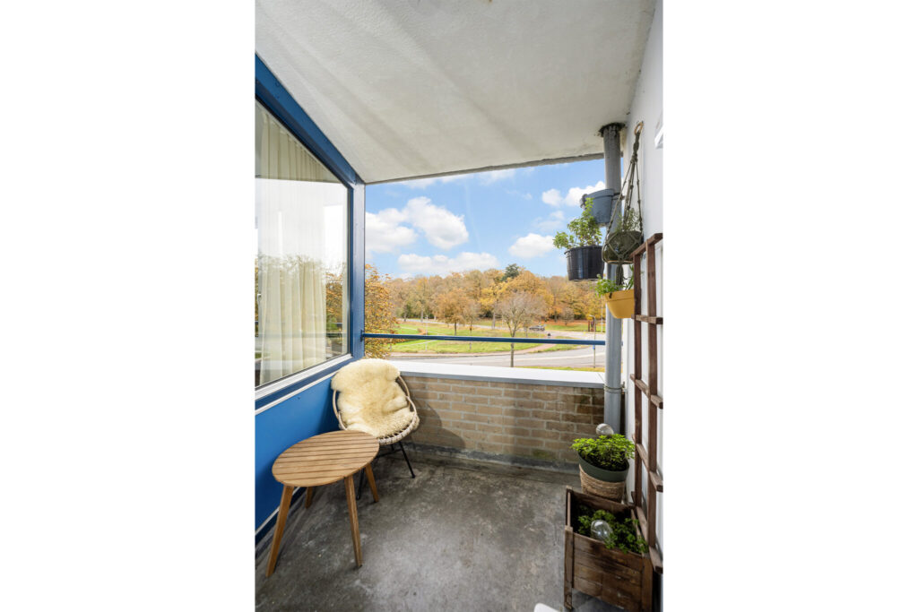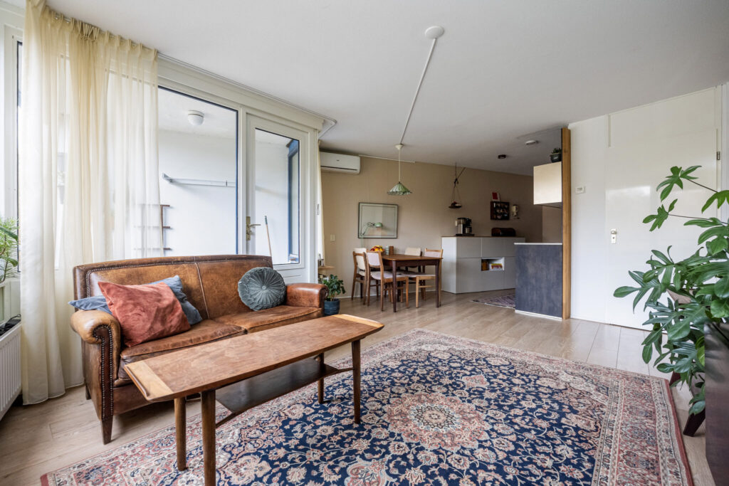 Via de hal bereik je de lichte woonkamer met laminaatvloer en strak afgewerkte muren. Het inpandige balkon (noordoost) is de perfecte plek voor een kop koffie in de ochtendzon.