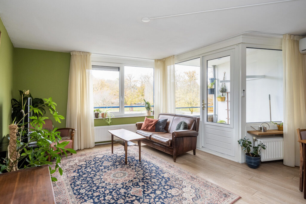 Het kenmerkende ronde ontwerp van het complex zorgt voor een speelse en verrassend slimme indeling. Vanuit de woonkamer kijk je vrij weg over de rotonde รฉn richting het Zandhovebos โ een heerlijk groen uitzicht. De moderne keuken, twee volwaardige slaapkamers en het inpandige balkon maken dit appartement ideaal voor starters, jonge stellen en alleenstaanden die prettig willen wonen zonder gedoe.