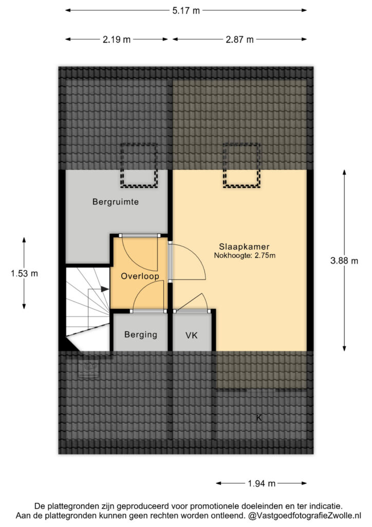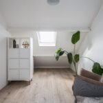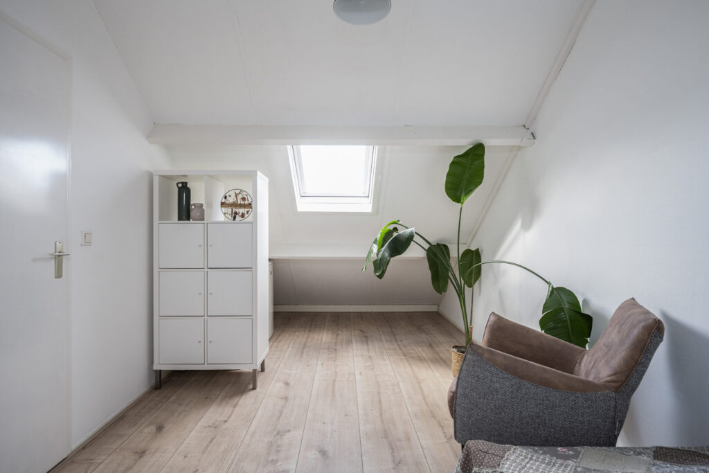 Via een vaste trap kom je op de voorzolder met een aparte ruimte voor de cv-opstelling (Intergas, 2009). Daarnaast is hier een vierde slaapkamer met een Velux dakraam en veel bergruimte onder het schuine dak.