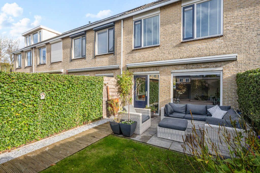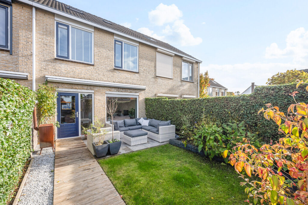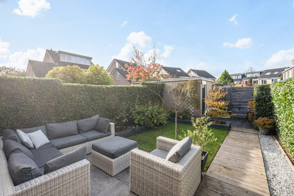 De achtertuin is verzorgd aangelegd, heeft een vrijstaande stenen berging en is bereikbaar via een achterom. De tuin ligt op het westen – ideaal om in de middag en avond van de zon te genieten.